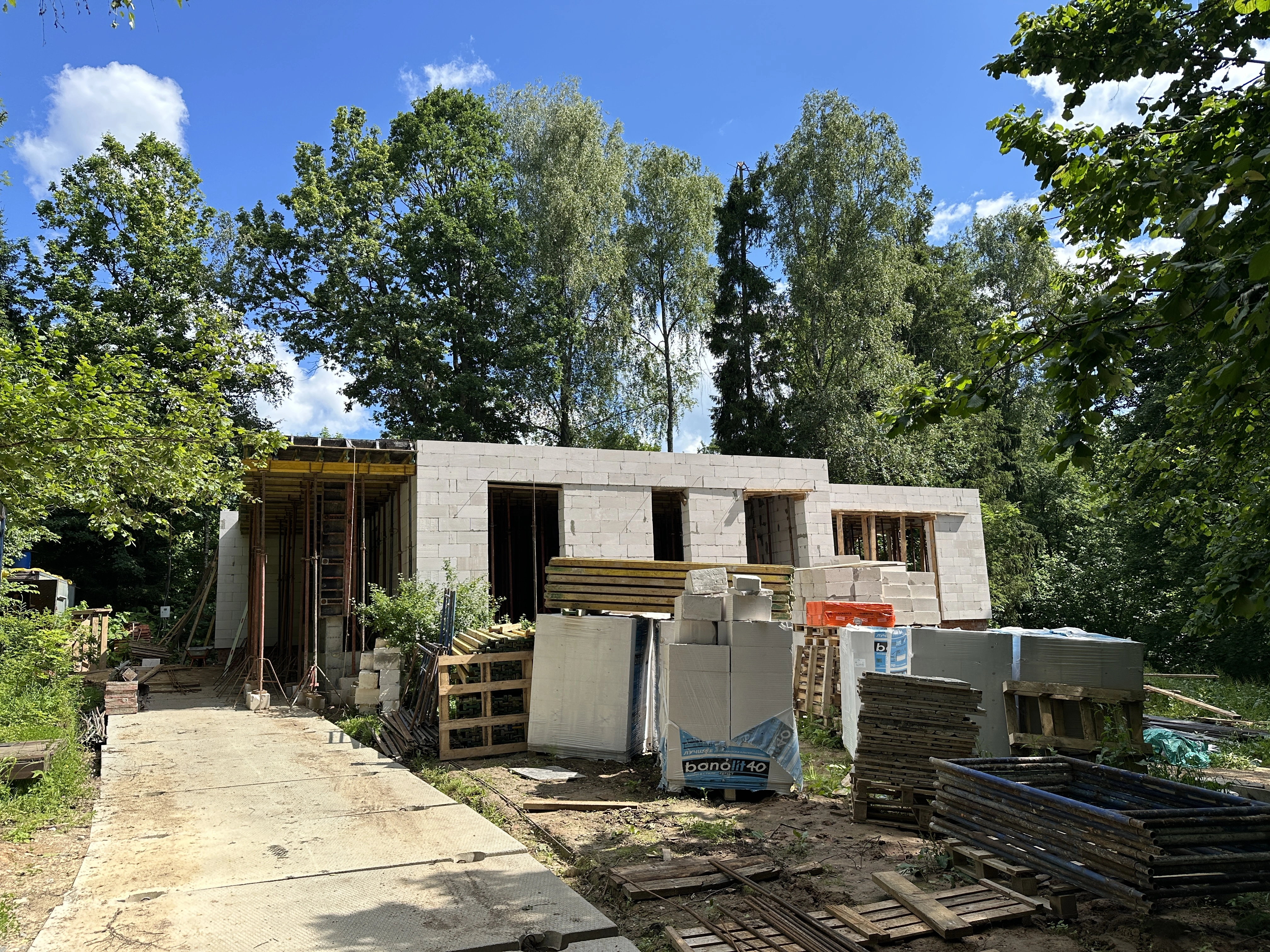 На фото - этапы строительства: фундамент, стены, перекрытия, кровля. Так вы видите, что мы отвечаем за весь цикл, а значит сроки и качество проще контролировать.